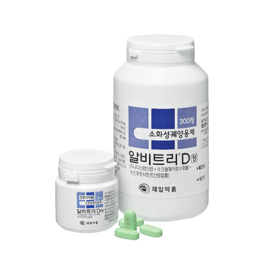라니티딘염산염(Ranitidine HCl), 수크랄페이트수화물(Sucralfate hydrate), 비스무트시트르산염칼륨(Tripotassium bismuth dicitrate) |